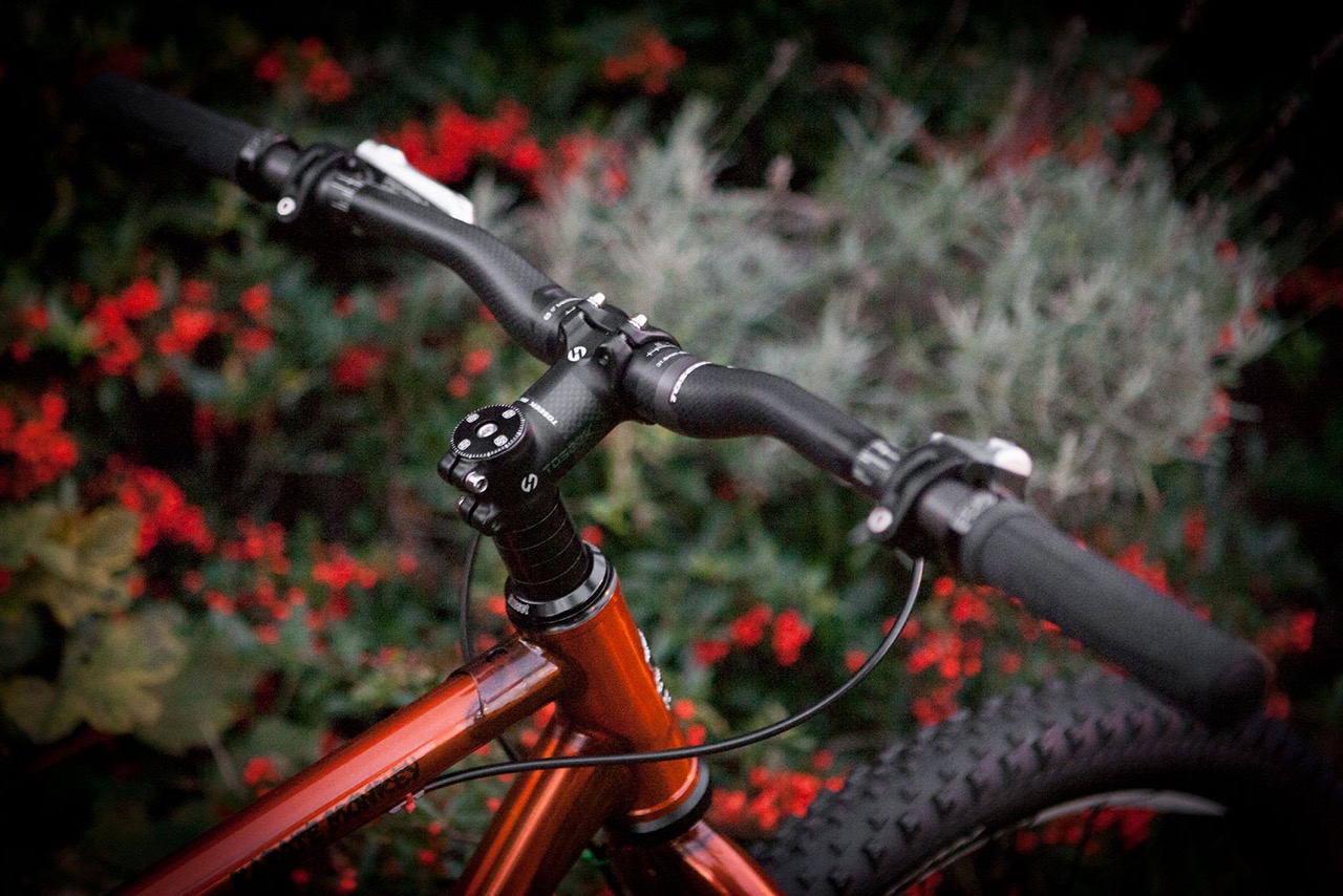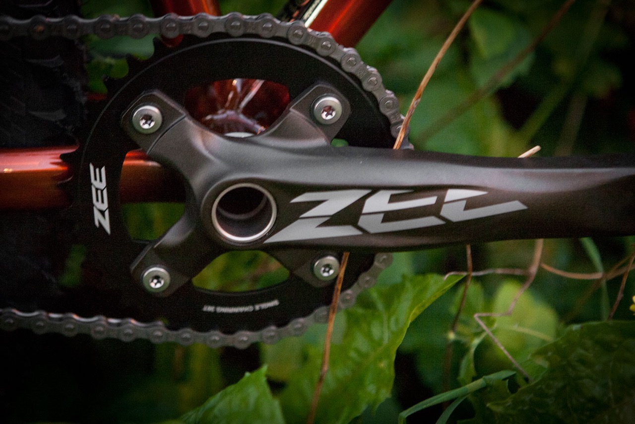 Built up this beast of a 29+ recently for smashing around the woods and bike packing… It’s a tank! I have since upgraded the wheels for Hope Pro 4 Hubs and CX Rays with the same Stans Hugo Rims and it’s now set up tubeless using stans tape and sealant. I drilled the seat tube on the non-drive side near the base of the tube to accommodate internal dropper post routing… The tubes being 4130 butted means they’re plenty strong enough to take a 5mm hole without problems… We’ve figured out that you can run a short cage Zee mech with an 11-42T sunrace 10sp cassette without the need for a longer B-Screw which offers a massive wide range if you want to only run a single ring up front (The Hunt is built to be run single ring only)